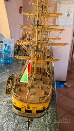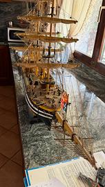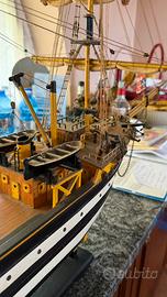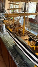 Vendo grande modellino di veliero in legno realizzato artigianalmente, completo di base. Ricco di dettagli e ideale per arredamento studio, taverna o collezionismo. Lunghezza circa 120 cm. Oggetto decorativo importante e di forte impatto visivo. Ritiro a mano.