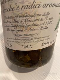 Vendo bottiglia di Erbasaluis – grappa artigianale italiana da 700 ml, 40% vol, prodotta con erbe, frutti, bacche e radici aromatiche secondo tradizione piemontese.