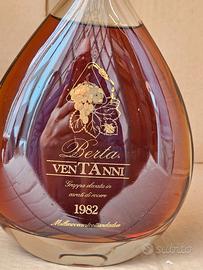 La bottiglia nell'immagine è una Berta Ventanni, una pregiata grappa invecchiata prodotta dalle Distillerie Berta. Si tratta di un distillato del 1982, invecchiato in carati di rovere, che rappresenta un pezzo da collezione per gli amanti del genere. Le Distillerie Berta, situate nel Monferrato, sono rinomate per la loro lunga tradizione nella produzione di grappe di alta qualità e invecchiate. . VENDUTA VISTA E PIACIUTA . SOLO BOTTIGLIA NO CASSETTA DI CONFEZIONAMENTO. LA PREPARAZIONE DELL 'IMBALLAGGIO SARA FATTA CON UNA CASSETTA DI LEGNO, CON PLURIBOOL, SPEDIZIONE A REGOLA D'ARTE, LE SPESE SARANNO A CARICO DELL ACQUIRENTE CIRCA 19 EURO. Trattative in privato contattatemi