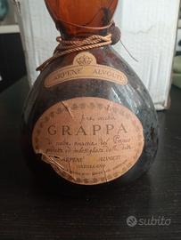bottiglia di grappa Carpene Malvolti Fine Vecchia è un'edizione vintage, con un'etichetta che indica la sua origine da vinacce di Prosecco e un contenuto di 450 ml di anidro.