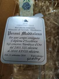 Bottiglia grappa cuvèe millesimata premiata distilleria Peroni Maddalena-Franciacorta 50cl 40%vol -blend di grappe da vinacce di Chardonnay Franciacorta e Lugana del Garda del 2004