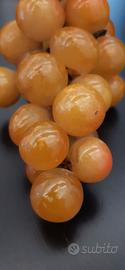 Magnifico grappolo d'uva con acini in alabastro di Volterra e finale in legno. Decorazione da tavolo di produzione artigianale degli anni ‘70, in ottime condizioni.