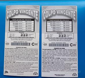 serie di 2 biglietti integri ( con logo e con scritta " gioca senza esagerare " COLPO VINCENTE da 10 euro anno 2008 lotto 0038.