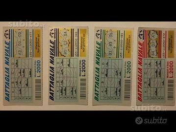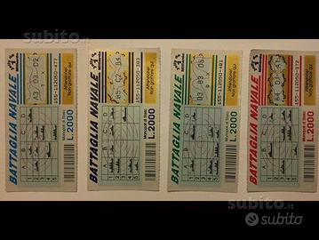 Vendo serie completa Gratta Vinci "Battaglia Navale" composta da 4 biglietti: rosso, azzurro, blu e verde.
