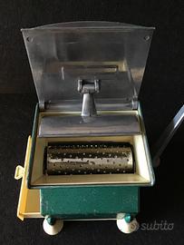 grattugia formaggio/pane anni 50 Castorina, esposta al museo del formaggio parmigiano Reggiano, con cassettino raccogli formaggio integro, le ventose ci sono tutte sono solo rigide per gli anni passati,, l'interno si presenta bene ancora funzionante, ci sono piccoli pezzi di vernice mancanti sulla scocca ma a vedere quelle in vendita su internet la mia è nuova....se volete altre foto o video le mando volentieri, misura h. 13 x13x13 cm. Visto è piaciuto spedizione a carico vostro Ritiro a mano a Parabiago