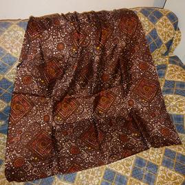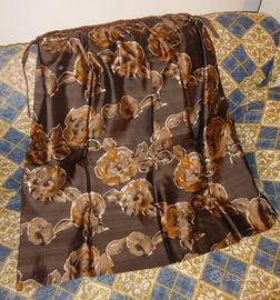 Vendo diversi grembiuli di differenti stoffe e fantasie che si usavano con la gonna in crespo di lana e lo scialle ad Osilo.