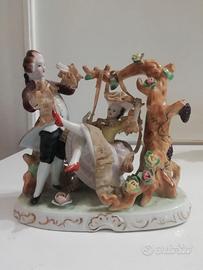 il gruppo con il cavaliere e la dama sull'altalena cm 15 x 15 x 7 probabile manifattura di Meissen