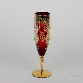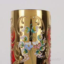 Gruppo di sei bicchieri in vetro rosso rubino con ricche decorazioni in oro e
