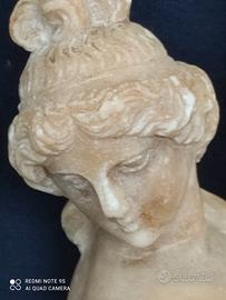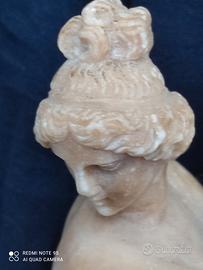 Bellissimo gruppo scultoreo neoclassico dell'ultimo quarto del XVIII Secolo rappresenta due donne con vestaglia che abbracciano una colonna, bellissima la qualità scultorea, lineamenti dei visi perfetti, il panneggio delle vesti è di altissima qualità scultorea anche la qualità dell'alabastro è ai massimi livelli, buone lo stato di conservazione (considerando che l'opera ha circa 250 anni) manca solo un pezzetto di colonna (vedi foto n. 14) per il resto è ottima (non ha alcun restauro). Fu' da me acquistata in Francia una ventina di anni fa'esattamente da un'antiquario di Digione