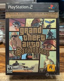 Gta San Andreas Special Edition PS2 Sealed NTSC Canadese - Pezzo unico introvabile ovunque sia nuovo che usato in buone condizioni ( Credo che la parte cartonata è tutta in inglese, dato che sembra esserci solo un foglio che copre l’edizione, metà francese e metà inglese, non sono riuscito a trovare da nessuna parte l’edizione canadese quindi non garantisco comunque. ) Nessun minimo difetto, é intonso. Su richiesta posso farlo gradare gratuitamente. Credo sia un 10 Essendo questo un oggetto della mia collezione personale, questo annuncio è rivolto esclusivamente a collezionisti, questa è un edizione da tenere sigillata, non da aprire e usare. Non vendo a chiunque, neanche a prezzo maggiorato! Spedizione espressa, verrà imballata alla perfezione, l’assicurazione in caso di necessità é a carico dell’acquirente.
