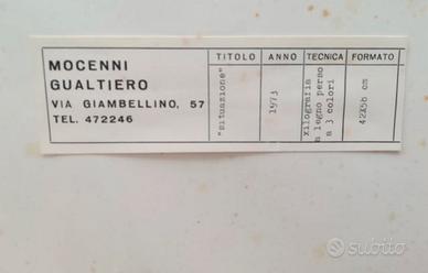 Gualtiero Mocenni xilogeafia firmata e numerata es. 21/49 bassa tiratura Titolo “Situazione” anno 1973 Cornice coeva con vetro e carteggio dell’epoca Quadro multiplo litigrafia serigrafia reggiani pozzati dal pozzo munari accardi dorazio cassinari treccani maccari possenti greco mastroianni biasi massironi alviani bueno Gnoli caraceni nespolo pignatelli schifano festa ceroli griffa crippa Franco Angeli fioroni pascali gnoli Kounellis Adami cacciola salvo Antonio corpora tano festa Sergio dangelo Claudio cingoli joe tilson concetto pozzati Gualtiero nativi magnelli uberto bonetti aldo mondino sassu scanavino magnelli gruppo enne gruppo zero scuola romana pop ceroli crippa griffa banalumi Afro Antonio Alciati Renato Birolli Giovanni Boldini Aroldo Bonzagni Alberto Burri Massimo Campigli Giuseppe Capogrossi Carlo Carrà Felice Casorati Bruno Cassinari Ferdinando Chevrier Giorgio de Chirico Raffaele De Grada Angelo Del Bon Fortunato Depero Gerardo Dottori Gianni Dova Fontana Francalancia Franco Gentilini Silvano Girardello Guarnieri Giuseppe Guerreschi Virgilio Guidi Renato Guttuso Carlo Levi Antonio Ligabue Mario Mafai Alberto Magnelli Esther Mahalangu Fausto Melotti Francesco Menzio Mirko Basaldella Amedeo Modigliani Mattia Moreni Ennio Morlotti Fausto Pirandello Arnaldo Pomodoro Giò Pomodoro Concetto Pozzati Prampolini Ricas Bruno Saetti Aligi Sassu Alberto Savinio Emilio Scanavino Toti Scialoja Gino Severini Mario Sironi Atanasio Soldati Mario Tozzi Emilio Vedova Renato Vernizzi Zoran Mušič Claudio Caffetto minguzzi martini bontempi portauppi tacchi mambor pascali lombardo bodini chiggio martini marino marini spacal borsato pengo