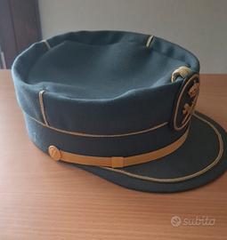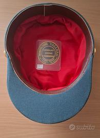 Presenta una visiera rigida ed un soggolo dorato fissato da piccoli bottoni laterali.