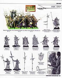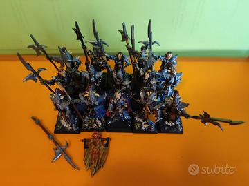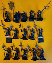 In vendita 15 modelli di Guardie nere, Elfi Oscuri, in metallo con gruppo di comando (al campione manca l'arma), 6 edizione Warhammer fantasy.