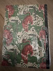 Taccuino da collezione Gucci con un vivace motivo di tigri e alberi.