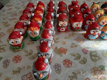 45 Gufi, vendo GOOFI EGAN immacolati in quanto mai utilizzati perché doppi, tripli, quadrupli, .... come si può vedere dalle foto, adatti ad essere appesi all'albero di natale ma anche come giocattoli, vendo. Per chi li prende tutti prezzo scontato. Fate proposte...
