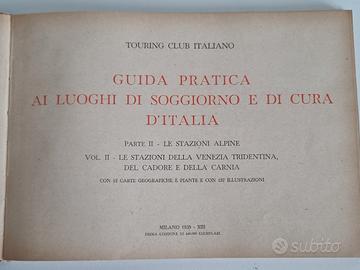 Guida pratica ai luoghi di soggiorno e di cura d'Italia del Touring Club Italiano, parte II, volume II, sulle stazioni alpine della Venezia Tridentina, del Cadore e della Carnia. - Pubblicata a Milano nel 1935. - Supplemento al N. 4 (Aprile 1935) della rivista mensile Le Vie d'Italia. Dimensioni 24 x 17 cm.