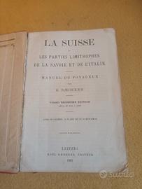 guida la suisse et le parties limitrophes de la savoie et de l'italie, leipzig 1903. qualche segno del tempo ai bordi della copertina e ai margini della cartina.