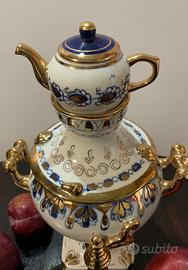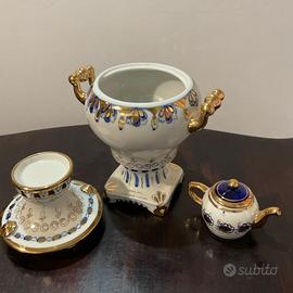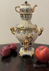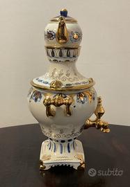 Samovar decorativo in porcellana bianca,blu e oro, anni 70-80 (marchio adottato dal 1972-1986) in condizioni perfette. Manifattura Gzhel – Mosca. Alt. cm.24.