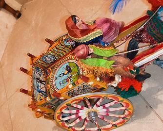 Carrettino Siciliano vintage in legno con cavallo, risalente agli anni '70. Un pezzo unico per collezionisti!