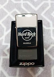 Zippo originale Hard Rock Cafe di Bruxelles. - Design nero con logo. - Autentico pezzo da collezione.