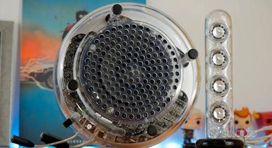 Ciò che colpisce delle Harman Kardon Soundsticks non è tanto la funzionalità Bluetooth, quanto il design delle casse. Le due casse hanno forma cilindrica, e sono realizzate interamente in plastica trasparente. La plastica è di una qualità eccezionale.