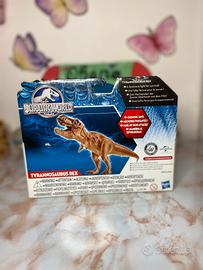 Action figure del Tyrannosaurus Rex Bashers & Biters di Jurassic World, prodotta da Hasbro nel 2015. Azione Morso: Muovendo la coda del dinosauro da sinistra a destra si aziona la sua mascella, permettendogli di mordere. Danno da Battaglia: Il lato della figura presenta un segno di danno da battaglia visibile, che mostra costole e un po' di sangue. Dettagli Aggiuntivi: Presenta un logo di Jurassic World sul fianco e le gambe e le braccia hanno un movimento di 360 gradi. Per informazioni contattatemi 😊