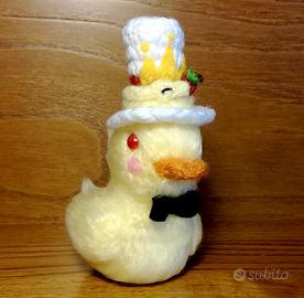 Pupazzetto di lana realizzato a mano con tecnica all'uncinetto e lana infeltrita, Lucifero Stella del Mattino da Hazbin Hotel in versione paperella di gomma.