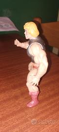Bellissima action figure vintage di He-Man, con armatura da battaglia, dei Masters of the Universe.