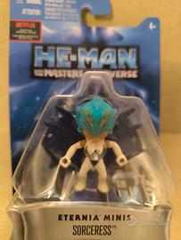 Personaggi inclusi nel lotto:He-Man – versione ispirata alla serie Netflix, con armatura nera e simbolo sul petto ben dettagliato.Skeletor – classico nemico di He-Man, con volto verde acceso e mantello viola scuro.Sorceress – figura bianca con elmo azzurro, dettagli di mantello e armatura riprodotti fedelmente in miniatura.Evil-Lyn – strega malvagia in versione mini, con copricapo viola e bastone (visibile all’interno del blister).Caratteristiche principali:Linea: Eternia Minis – He-Man and the Masters of the Universe (Netflix)Produttore: Mattel Condizione: nuove, sigillate, mai giocate Provenienza: blister originali con loghi, avvertenze di sicurezza e codici a barre integri. Dimensioni: mini figure compatte, perfette per esposizione in vetrina. 4 personaggi fondamentali in un’unica soluzione: eroe, villain principale e due importanti personaggi magici (Sorceress ed Evil‑Lyn), perfetti per completare o avviare una collezione. Ottima idea regalo per fan di He‑Man, sia adulti nostalgici sia bambini che seguono la serie Netflix. Spedizione: Imballo accurato. Le confezioni possono presentare lievissimi segni da scaffale sugli angoli della cartoncino plastificato, nulla che comprometta l’estetica generale o la collezionabilità.
