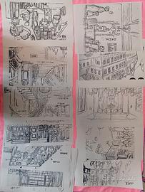 Stampe settei e schizzi preparatori dell'anime del 1974
