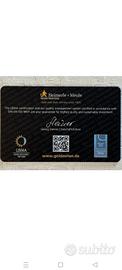 Heimmerle + Meule - 0,5g - lingotto d'oro da investimento Paese di origine: Germania Produttore. Peso fine: 0,5 grammi Finezza: 999,9/1 000 Condizione : Nuovo Imballaggio : SECAIN Card (5 pz. disponibili). ..Non Trattabile..