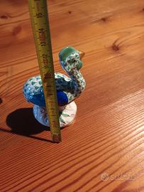 Raffinata porcellana Herend con la figura del Tacchino, colore bianco,blu e oro con ali blu cobalto,rosa intenso e verde.
