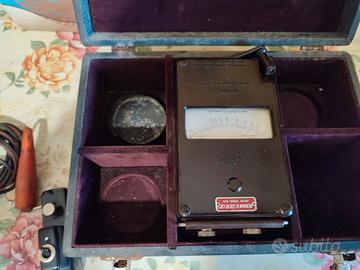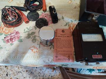 Strumento per test di conduttività con megaohmetro a manovella. Completo di accessori e valigetta in buone condizioni come visibile da foto.Sembra degli anni '50. Ho testato il misuratore e sembra relativamente preciso finché si continua girare, ma la lettura scende non appena ci si ferma. Nessun danno rilevato.