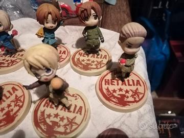 N. 12 Minifigure Gashapon Hetalia, come da foto. Nuove, alcune ancora nella bustina originale, tutte con basetta e supporto, tranne una.