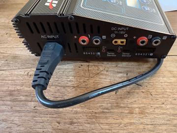 Vendo caricabatterie per LiPo, usato veramente pochissimo. Per i dettagli tecnici, vi rimando al sito del produttore Posso spedire con tutto subito. - Doppia alimentazione: 11-18 V DC o 220 V AC - 4 canali da 50/5 W totalmente indipendenti ciascuno dotato di tastiera e di schermo LCD - Software ottimizzato potente e facile da utilizzare - Bilanciatore integrato per ogni canale per caricare al meglio i pacchi batterie Litio - Programmi dedicati per ogni tipo di batteria al Litio - Sicurezza massima in carica e in scarica - Corrente di carica limitata automaticamente - 5 memorie per ciascuna uscita del caricabatterie per salvare i dati delle vostre batterie - Gestione di cicli carica/scarica o scarica/carica per batterie NiXX