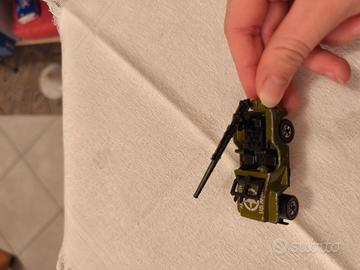 Modello: Gunslinger (Fanteria a cavallo), un modello da collezione d'epoca. Marca: Hot Wheels (Mattel). Dettagli: Presenta decalcomanie "US ARMY" bianche sul cofano e un cannone montata sul retro. Le ruote hanno la caratteristica striscia rossa ("Redline") sul bordo, tipica dei primi modelli Hot Wheels. Materiale: Metallo pressofuso (die-cast) e plastica