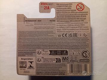 HW Roadsters "JAGUAR", logo Hot Wheels e strisce argento e nere sui lati; spoiler nero; fari verniciati