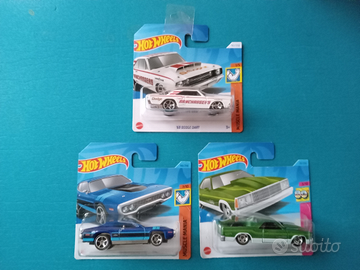 13 hot wheels Come da foto - Dodge Charger '69 500 (2022) - Dodge Charger '71 (2022) Auto resa leggendaria da serie TV e film (Hazzard, Fast&Furious) - Ford Mustang 2+2 Fastback '65 (2022) - Ford Gran Torino Sport '72 (2022) - 71 Plymouth GTX (2023) - 80 El Camino (2023) - 68 Dodge Dart (2024) - 69 Mercury Cougar Eliminator (2024) - 64 Chevy Chevelle SS (2024) - '77 Pontiac Firebird T/A (2024) -'70 Chevy Camaro Rs (2025) - 67 Shelby GT 500 (2025) - 69 Mercury Cyclone (2025) Prezzo NON trattabile Visto&piaciuto