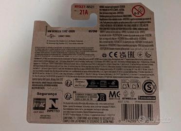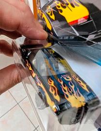 HW Screen Time 5/10 2025 Nuova di zecca confezione in perfette condizioni appena uscita di fabbrica. K.I.T.T. è il nome abbreviato dei Knight Industries Two Thousand, che comparve nella serie TV originale Knight Rider. K.I.T.T. è un modulo di computer elettronico artificialmente intelligente nel corpo di un'automobile robotica altamente avanzata e molto mobile. La K.I.T.T. originale era una Pontiac Firebird Trans Am del 1982 ed era doppiata da William Daniels. Nella storia della serie televisiva, il primo K.I.T.T. (Knight Industries Two Thousand) è stato progettato dal compianto Wilton Knight, un brillante ma eccentrico miliardario e fondatore della Foundation for Law And Government (FLAG) e della sua casa madre Knight Industries. Il modello pressofuso in scala 1/64 è basato sulla stagione 1 K.I.T.T. ed è molto dettagliato. È dotato dell'iconica barra dello scanner di K.I.T.T. Una bella caratteristica di questo modello è il cruscotto/console stampato per ogni versione. Il dettaglio del telaio si basa sui disegni di controllo del kit K.I.T.T. E, sebbene sia difficile da vedere, il dettaglio della console superiore è incassato nel tetto del veicolo. K.I.T.T. è stato riorganizzato nel 2024, ma non sembra che siano stati apportati cambiamenti importanti. L'auto è stata realizzata anche in scala 1/43 e 1/18 nella linea Hot Wheels Elite. Anno di nascita: 1982 Luogo di nascita: Fondazione per la legge e il governo Progettista: Wilton Knight Specialità: K.I.T.T. KNIGHT INDUSTRIES TWO THOUSAND, un veicolo avanzato di intelligenza artificiale utilizzato in una crociata per difendere la causa degli innocenti, degli indifesi, degli impotenti, in un mondo di criminali che operano al di sopra della legge. Carrozzeria: Luce rossa dello scanner sul davanti, grafica della fiamma sui lati e sul cofano, ruote CBMC5