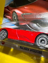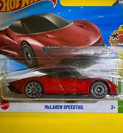 McLaren Speedtail della collezione Hot Wheels 2025. Il modellino cattura le linee fluide e aerodinamiche della hypercar a tre posti di Woking, presentata in una raffinata colorazione rosso scuro metallizzato con tetto nero. Il modello è il numero 5/5 della serie HW Exotics (numerazione totale 209/250). Dettagli del modello: • Modello: McLaren Speedtail. • Colore: Rosso scuro metallizzato con finiture nere. • Serie: HW Exotics 5/5 (Mainline 2025). • Codice Prodotto: JBB28. • Stato: Nuovo, sigillato in blister originale. Card in buone condizioni. Un'aggiunta di classe per completare il set HW Exotics o per ogni appassionato di McLaren. >>>>>>>> Hypersalon - Show-room <<<<<<<<