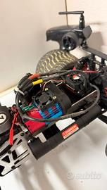 il modello è completo di radiocomando e monta combo brushless 2600kv, luci anteriori e posteriori, soundbox (emette il rumore di un motore vero) e ruote maggiorate.