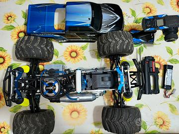 Vendo HPI Savage XL Nitro, monster truck RC scala 1:8, modello BIG BLOCK POWER, potente e robustissimo, ideale per divertimento, bash e fuoristrada. La macchina è completa, curata e con numerosi upgrade, come visibile in foto. 🔧 Telaio e meccanica • Telaio HPI Savage XL rinforzato • Trasmissione robusta Savage • Differenziali anteriori e posteriori • Ammortizzatori maggiorati con molle gialle • Bracci sospensioni rinforzati • Cerchi e gomme tassellate off-road in buone condizioni • Paraurti anteriore e posteriore • Roll bar e protezioni telaio 🔥 Motore e scarico • Motore nitro Big Block (classe .28 / .30) • Scarico racing in alluminio • Collettore e tubo benzina blu • Filtro aria racing • Avviamento Rotostart Motore potente, adatto al Savage XL, coppia elevata e grande divertimento. ⚙️ Elettronica • Servo sterzo • Servo gas/freno • Ricevente installata • Impianto frenante efficiente 🎨 Carrozzeria • Carrozzeria HPI Savage XL • Grafica K5.9 – Big Block Power • In buone condizioni generali 📦 DOTAZIONE INCLUSA ✔️ Telecomando ✔️ Rotostart completo ✔️ Batteria per rotostart ✔️ Scaldacandela