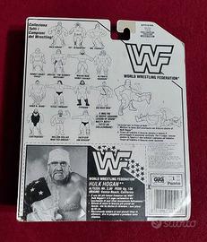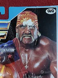 Hulk Hogan - WWF Hasbro wrestling - serie 3 - edizione italiana GIG (1991). Personaggio nuovo in confezione mai aperta. Card con strappo nella zona del volto della foto. Piccole pieghe e ammaccature agli angoli. Bolla in ottime condizioni, senza segni di ingiallimento.