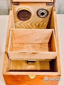 Nuovo Misure: 29x15x18 Humidor marrone in legno di Cedro con Igrometro e Umidificatore per 25/30 sigari.