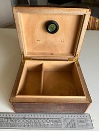 Umidificatore/scatola/box vintage per sigari, costruito in legno impiallacciato e radica, made in Italy, marca Kelermes.