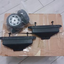 ruote e pezzi di ricambio per hummer h2 tutto ciò che si vede in foto due paraurti uno nuovo mai montato uno buono ma usato senza segni di usura 7 ruote, tutto per modellino scala 1/8 vendo anche separatamente ruote paraurti