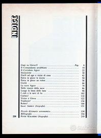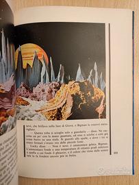 Isaac Asimov: "LUCKY STARR E LE LUNE DI GIOVE" (Romanzo) Peter Kolosimo: "PICCOLO DIZIONARIO ASTRONOMICO" Illustrazioni di Ennio Lavagno ed. Giunti Marzocco, 1975 • collana "Dizionari dell'avventura" • Fuori catalogo 221 pagine • 18,5 x 25,5 cm • Copertina rigida illustrata e plastificata Numerose illustrazioni (fotografie e disegni) a colori e in b/n — ▶️ CONDIZIONI: Lievi segni del tempo ai bordi della copertina (v. foto). Firma d'appartenenza alla prima pagina bianca. Per il resto, interno perfetto, come nuovo. — Lucky Starr, Stella Fortunata, giovane e brillante «consigliere della Scienza» (agente per la tutela della pace dei mondi terrestri), ha un quadro tragico davanti agli occhi: fuga di notizie importantissime sul progetto Agrav... inspiegabile sistema di spionaggio... Sirio, il grande nemico, per la prima volta agisce allo scoperto... è in gioco la sopravvivenza dei mondi terrestri... la certezza di questa grave minaccia è l'unico elemento. Vedere INDICE e NOTIZIE SUGLI AUTORI in foto. — Dizionari dell'avventura – Una nuova entusiasmante collana in cui la fantasia si allea alla scienza con una formula che va oltre la fantascienza e la divulgazione scientifica intese nel senso tradizionale, perché ogni volume prevede, accanto al romanzo avventuroso, dalla trama probabile e avvincente, una simpatica e insieme rigorosa spiegazione dei termini scientifici relativi alla materia del romanzo stesso. Importanti firme del mondo della scienza, della letteratura, del giornalismo collaborano a questa collana dedicata ai giovani. Titolo originale: «Lucky Starr and the Moons of Jupiter» (traduzione di Patrizia Krachmalnicoff)