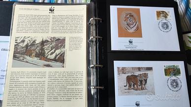 vendo collezione "i francobolli del WWF", che comprende nr.17 schede descrittive di animali in via di estinzione di tutto il mondo, corredate ciascuna da nr. 4 francobolli e nr.4 buste commemorative, con relative taschine kanguro e nr. 02 astucci contenitori con rilegatura in balcron. totale 68 francobolli e 68 buste commemorative.
