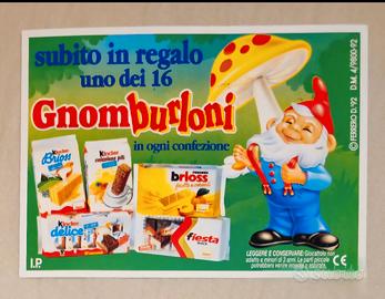 Serie completa (più 1 variante) della Kinder Ferrero denominata "i 16 simpatici Gnomi Burloni", anno di uscita 1992. Questa serie è composta da 16 personaggi più 1 variante, cartoncino illustrativo che si trovava all'interno delle confezioni di merendine Ferrero assieme ad un personaggio, e foglietto illustrativo degli ovetti. Condizioni dei pupazzetti e dei foglietto/cartoncino pari al nuovo. Da collezione. Spedizione possibile.