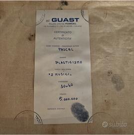 Quadro Tecnica Plasticismo “I Musici” Di Pascal Con Autentica. 30x40 cm Cornice 49x59 Cornice scheggiata